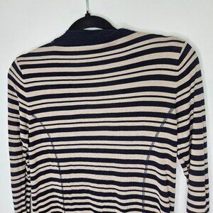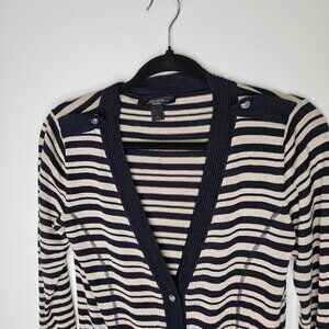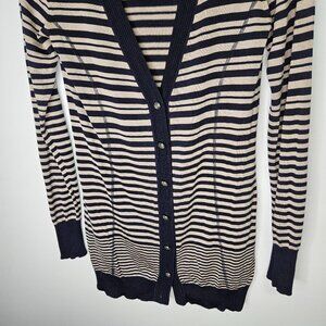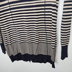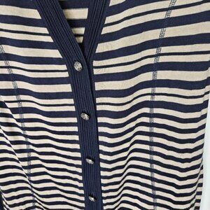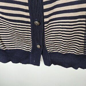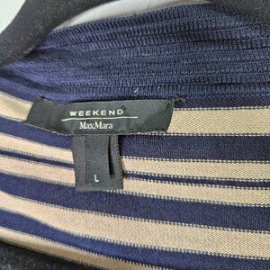 Max Mara Weekend Silk Cardigan Sz L Button Front Striped Navy Blue Beige
