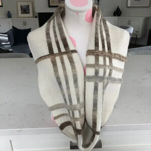 Max Mara Weekend Wool Blend Infinity Scarf in CreamTan Brown + Gray NWOT