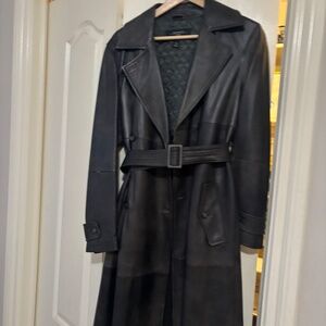 Beautiful authentic genuine  leather trench coat , like new condition except for a couple of tiny imperfections / dents in the leather . Only worn twice. Pls see photos