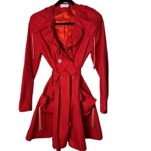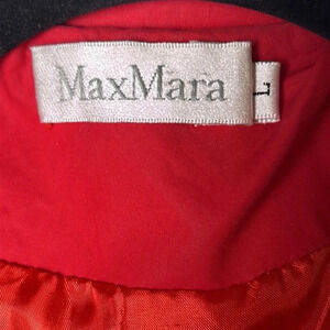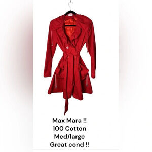 Max Mara red coat ,fairy,unique,fit & flare,cotton,ruffle collar,red carpet,EC
