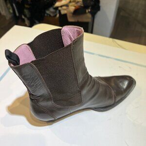 Max Mara woman dark brown ankle boots, worn but in fair condition. Heels just got replaced but are a bit damaged. Bottines Max Mara brunes, bien portées mais en bonne condition. Les talons sont un peu abîmés mais ont été remplacés récemment.