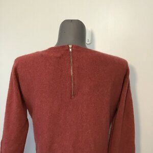 So soft and lightweight, this 100% 2 Ply Cashmere sweater is a great transition piece from Winter to Spring and Summer to Fall in delicious brick red colour. Features 1/4 back zip, rounded hem with small spilt and long sleeves.