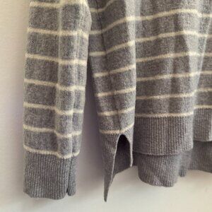 Keywords: minimalist sweater, classic stripes, breathable wool, cozy pullover, extra fine knit, cropped boxy fit, lightweight wool top, casual chic style, fall layering piece, relaxed merino, timeless wardrobe staple, soft everyday knit, workwear layering, weekend casual, sustainable fibers, Canadian resale, boutique knitwear, elevated basics, modern essentials, preppy stripe