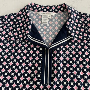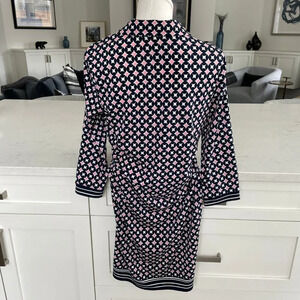 Max Studio 3/4 Sleeve Geometric Print Polyester Blend Dress Navy Wht Pink Sz M