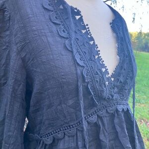 Max Studio Black Boho Lace Trim Peasant Top | Size Medium NWT