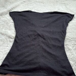 Max Studio Black Ruched Front Cap Sleeve Top | Adjustable Drawstring Blouse