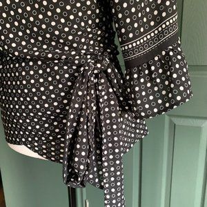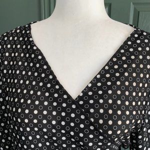 Max Studio Black/White Polka Dot Wrap Top - Size XL