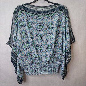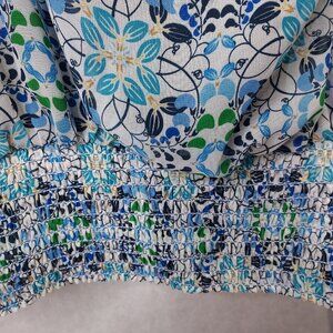 Max Studio Blouse Women's M Handkerchief Top Stretch Lined Blue Green Floral Top
