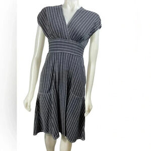 Max Studio Blue & White Striped Pockets Dress Size XS