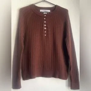 Max Studio Brown Ribbed Sweater with Buttons