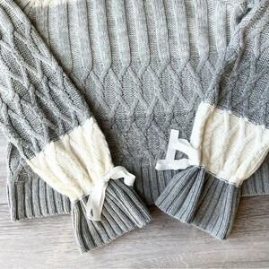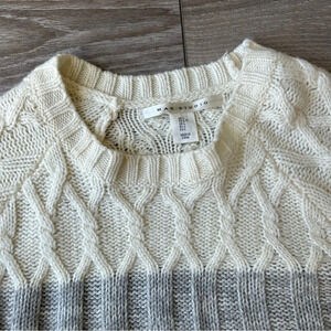 Max Studio Colour Block Wool Blend Cable Knit Ruffle Sleeve Sweater