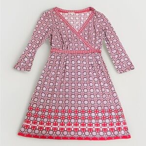 Max Studio Faux Wrap Print Stretch Dress Red Black Blue sz L