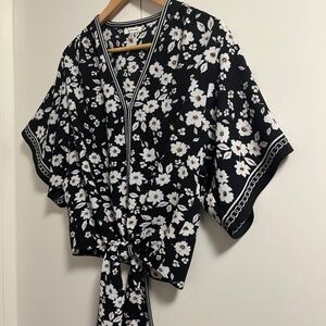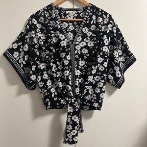 Max Studio Floral Kimono Sleeve Tie Front Blouse