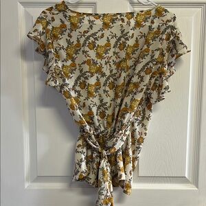 Max Studio Floral Wrap Top - Yellow and Gray