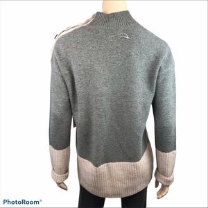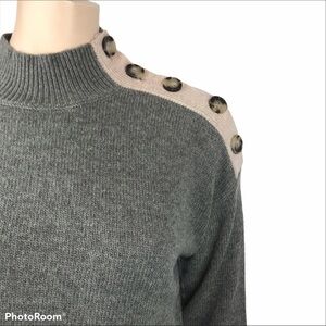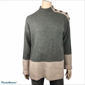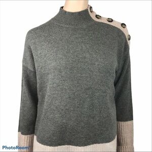 NWT Max Studio Grey Beige Colour Block Knitted Mock Turtleneck W/Decorative Buttons