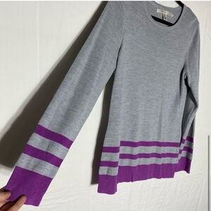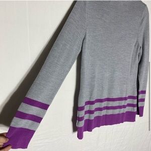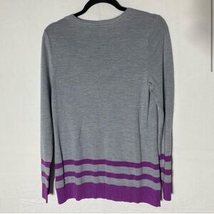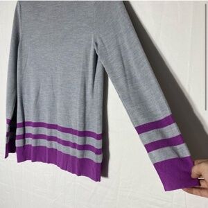 Max Studio Grey With Purple Stripes Extra Fine Merino Blend Light Sweater L