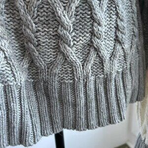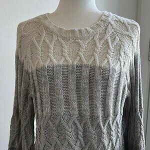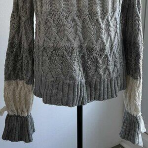Max Studio Grey-Ivory Ombre Wool Blend Cable-Knit Sweater w/ Ribbon Cuff – US M