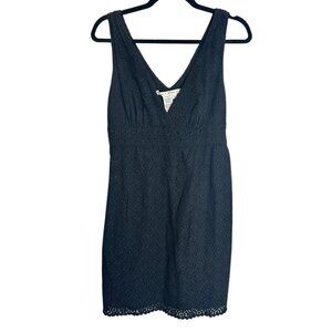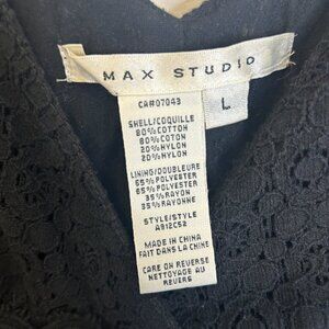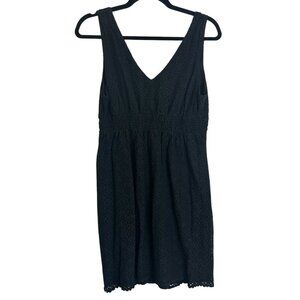 Max Studio All Over Lace Sleeveless Black Dress Sz L Smocking Cotton Eyelet