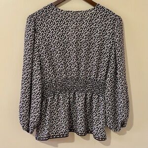 Max Studio| NEW Black/White/Brown Leaves Stylish Long Sleeved Top Blouse Sz L
