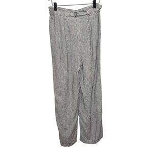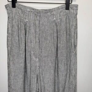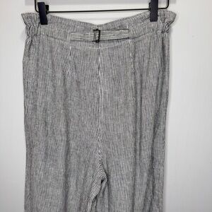 Max Studio Pants Linen Black & White Striped Pockets Adjustable Size 27