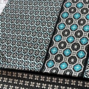 Like New! A perfect summer travelling dress in easy care stretch jersey with retro tile print in black white and turquoise. Featuring a square neck and cap sleeves, contrast pattern bodice and hem and a straight knee length sheath silhouette. 95%Polyester 5%Spandex. Machine Wash Lay Flat. Size Medium. Approx flat measurements: Bust 19” Waist19” Hip20” Length from shoulder 36.5. No signs of wear this dress looks like new.