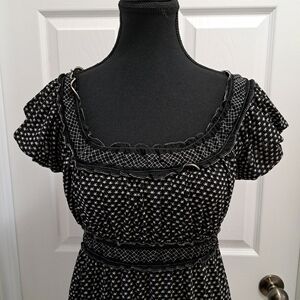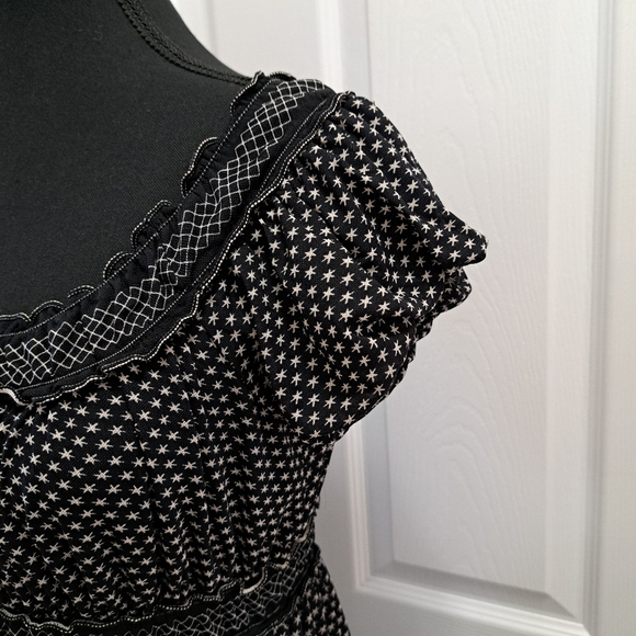 ❤️ Max Studio Short Sleeved Dress Black Cream Stars Women's Size Small Stretchy