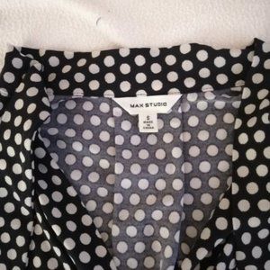 Max Studio sleeveless black and white polka dot flowy top. Button down top with an elastic waistband. It can tie up by the neck and be styled many different ways.