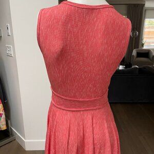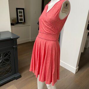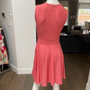 Max Studio Sleeveless V Neck Fit & Flare Rayon Poly Blend Dress in Heathered Orange + White