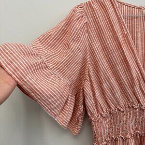 Max Studio Smocked Waist Stripe Tiered Mini Dress Peach Women's XL