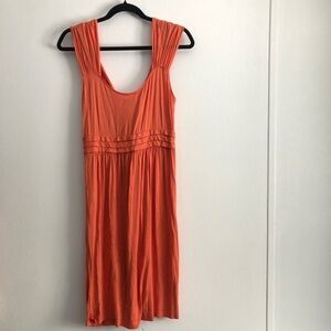 Max Studio Specialty Product Orange Womens MIDI Dress Size L Flowy Summer V neck