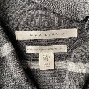 Max Studio Striped Extra Fine Merino Wool Sleeveless Cardigan
