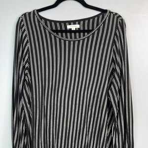 Women’s black and white Max Studio Vertical Striped Tunic Top.