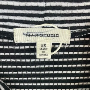 In excellent condition from Max Studio, a striking black and white striped top with twisted neckline. Cowl neckline, dolman balloon sleeves with elasticised cuffs. Elasticised hem.