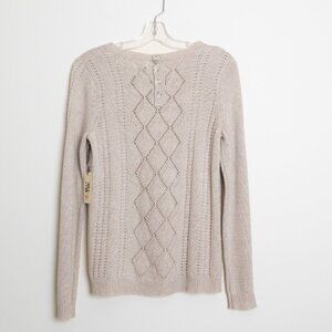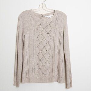 Max Studio Sweater Merino Wool Blend Beige Diamond Knit Pullover Medium