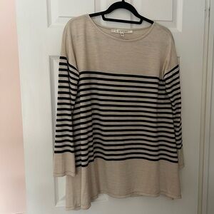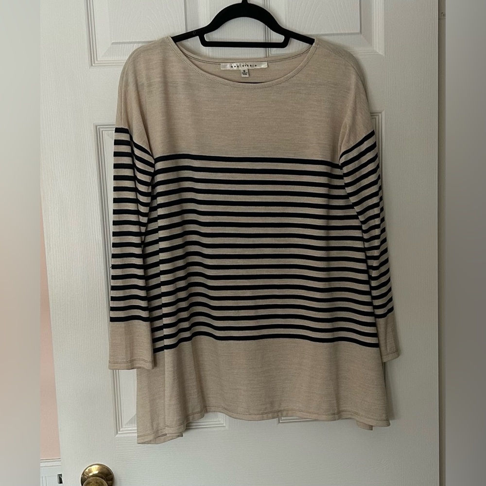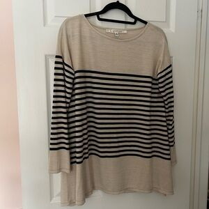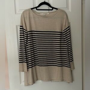Max Studio Top - beige cream/black color - lightweight - 3/4 length sleeves - 19” inches pit to pit - 28” inches length - only size worn a few times - excellent preloved condition