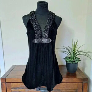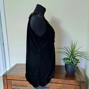 Max Studio Velvet Top Black Size Small Satin Ruffle Formal Sleeveless Women's