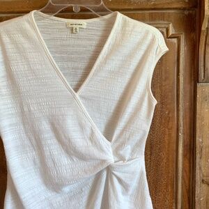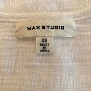 Max Studio White V-Neck Ruched Short Sleeve Top Size XS