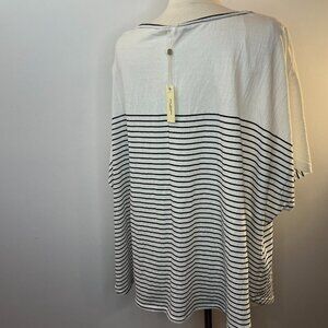 Max Studio Women's Black White Striped Cap Sleeve Top - Size 3X - NWT $98.
