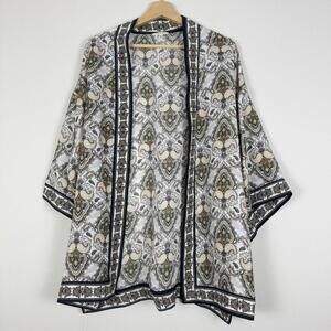 Max Studio Women’s Paisley Print Kimono Cardigan Open Front Size L Boho Casual