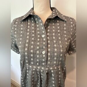 Max Studio XS Shift Dress Grey Patterned V Neck Collared Button NWOT