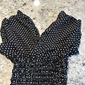 jumpsuit pants with honeycomb at the waist and V-neckline in front and back. Pantslon length 29 inches x14 inches. New condition!