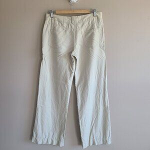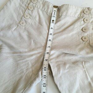 Max Studio linen/cotton bland beige pants with front buttons details.