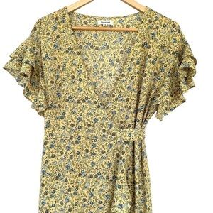 Max Studio wrap maxi length dress with ruffled sleeves and hem.