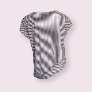An asymmetrical hem and front slit create versatility to this cap sleeve top that can be tied. Striped and super lightweight and flattering.