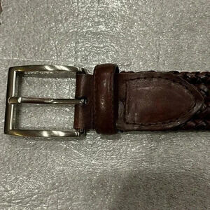 [Max45”] Unisex Brown Woven Leather 1” Belt
