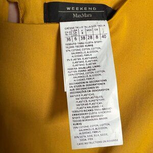 Embrace sophistication with this MaxMara midi dress, featuring a luxurious gold hue and a pleated A-line design. The scoop neckline and short sleeves add a touch of elegance, making it ideal for wedding guest or cocktail events. Crafted from a structured fabric, it offers a flattering fit for any special occasion.
