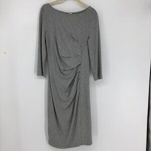 MaxMara Grey Jersey Boat Neck 3/4 Sleeve Ruched Side Knee Length Midi Dress ~M