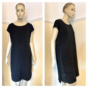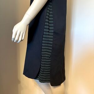 This elegant and stylish MaxMara sleeveless dress features opened sides with green & black striped pattern.