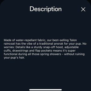 More information, including sizing, can be found here: https://www.maxbone.com/products/talon-raincoat-yellow.