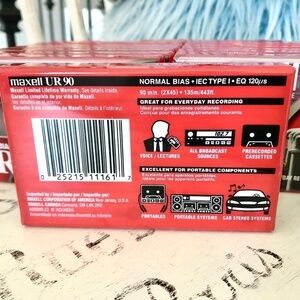 Maxell, Blank Cassette Tapes, 15, Blank Audio Cassette Tapes, 90 Minutes, New